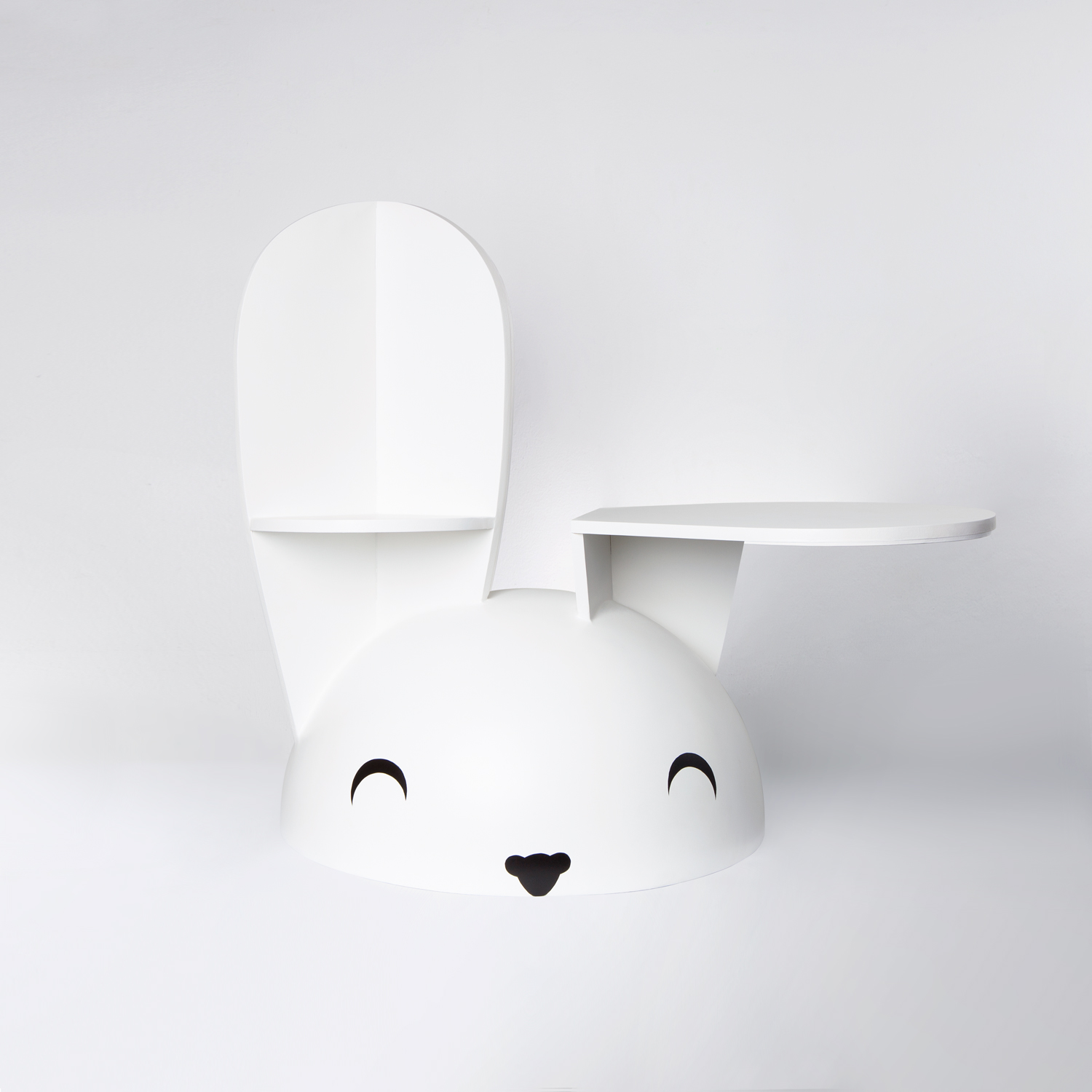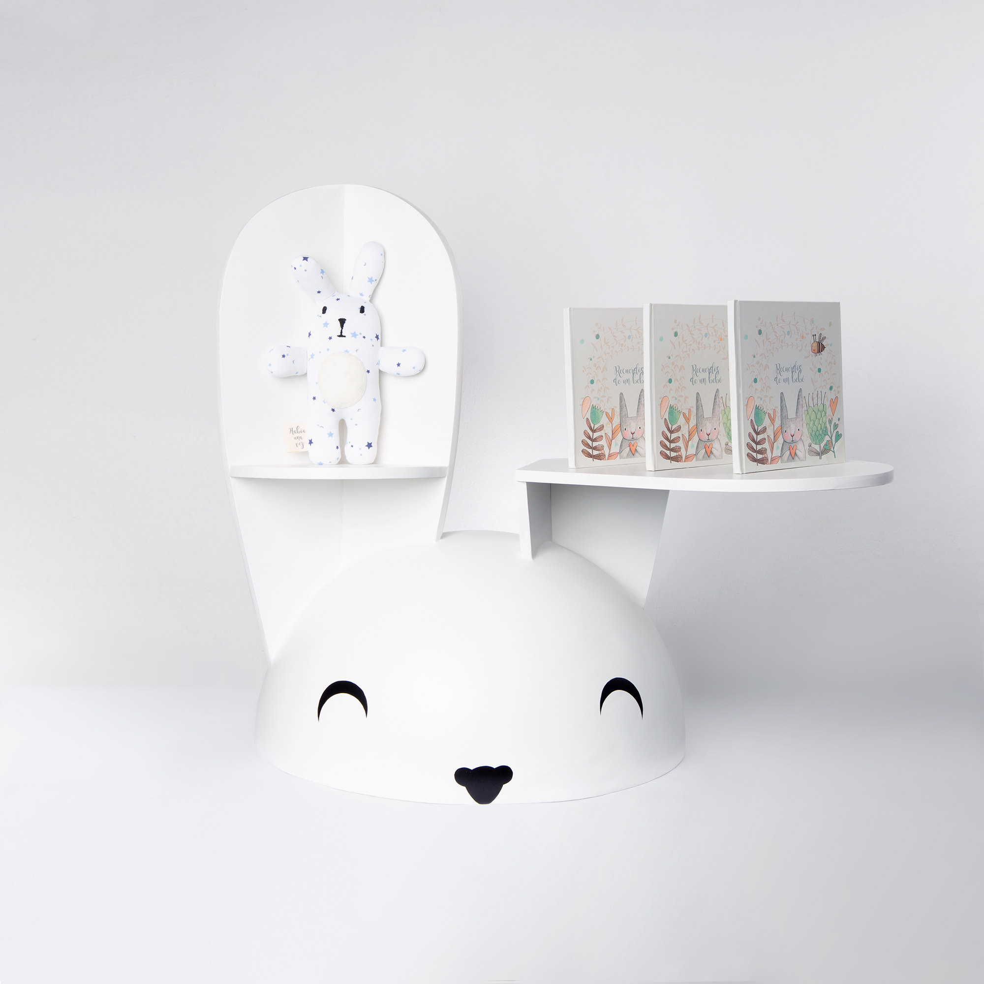 Un librero para tienda, que también es un conejito.